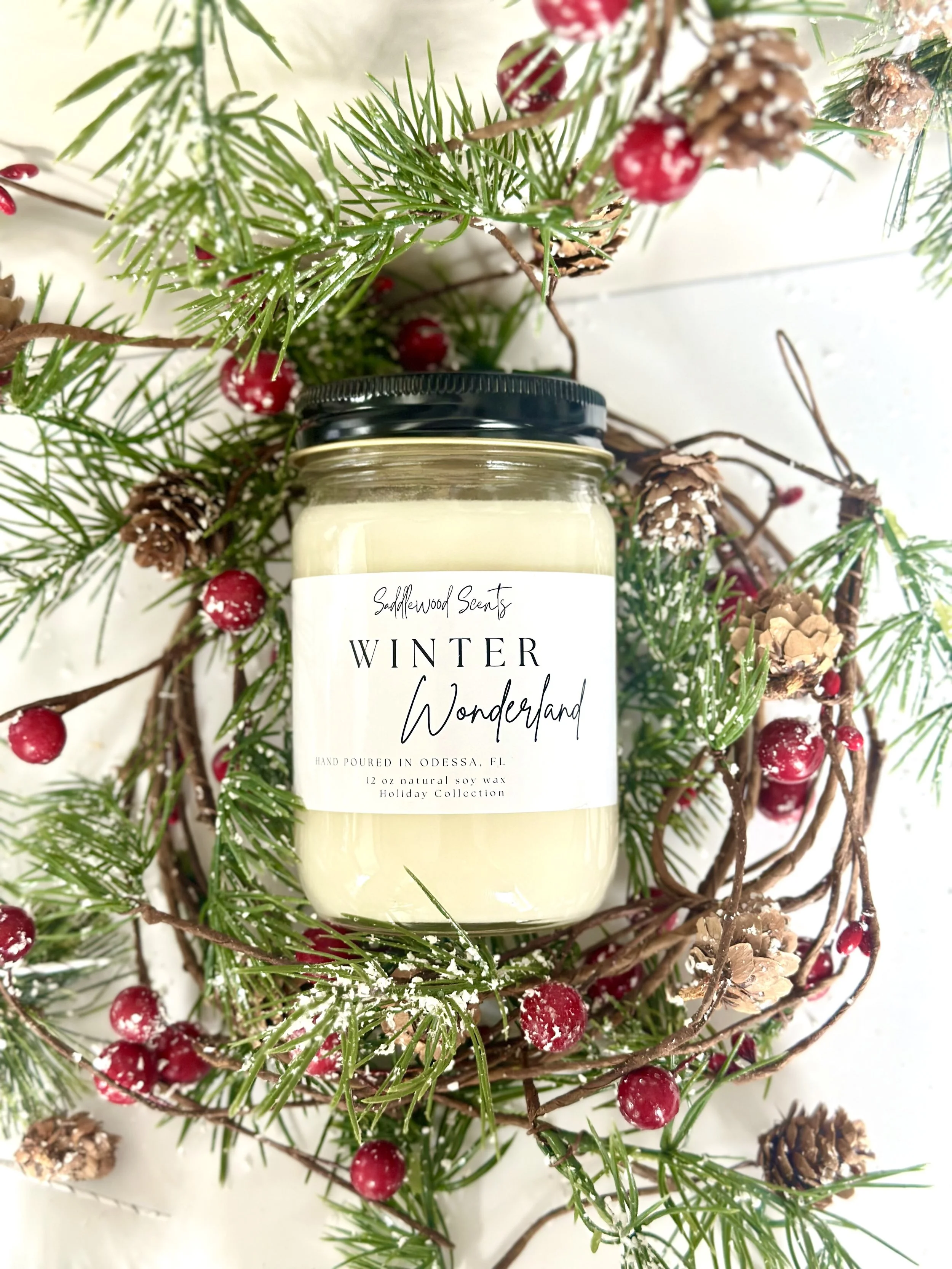 Notes of ozone, merge with mint and eucalyptus for a crisp cool air scent, and cypress, cedar and sage. These scents make the perfect Winter Wonderland candle.